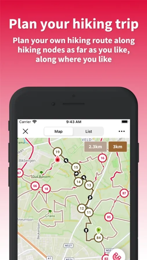 With the NodeMapp Hike app, the only real app for hiking nodes, you can explore the hiking network in Belgium (Flanders and Wallonia), the Netherlands, France, and Germany, amounting to more than 60,000 kilometers of hiking pleasure.