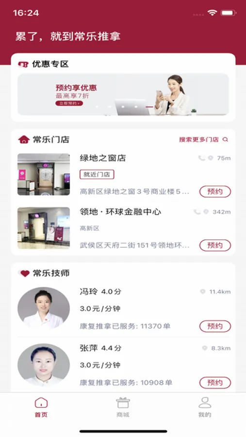 为方便您的亚健康调理,常乐将传统行业与互联网相结合,为亚健康人士提供便捷的预约方式,从此告别到店等待,到店即享服务。