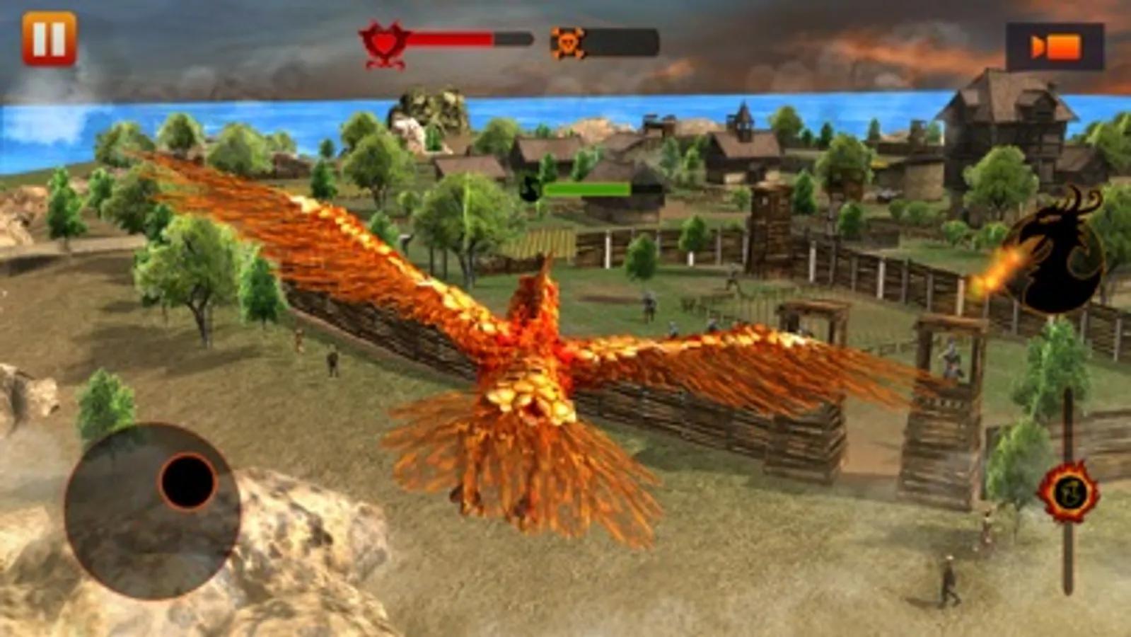 The legendary Phoenix perches over human lands and gazes at its kingdom. Take control of this mythological beast and reclaim your medieval kingdom. Fly through clouds and spit fireballs to destroy enemies. Attack fortresses and fight with knights & archers! Your goal is to swoop down and terrorize towns. Soar and race across town with your gilded wings! Fight other mythical monsters who’ve joined hands with your enemies and claim back what's yours.