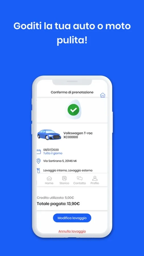 With just a few clicks, you can request the cleaning service that best suits your vehicle and your needs: interior cleaning, exterior washing, and in-depth sanitization, all at your doorstep.