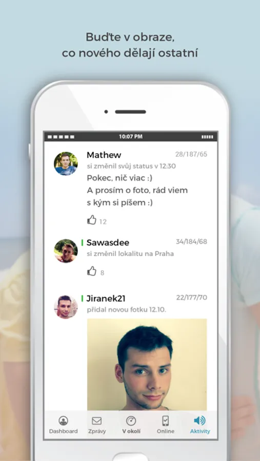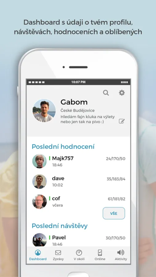 Zjisti, co se děje - na dashboardu je přehledně zobrazeno, kdo tě v poslední době navštívil a hodnotil, kolik z tvých oblíbených je právě online nebo kolik máš nepřečtených zpráv.