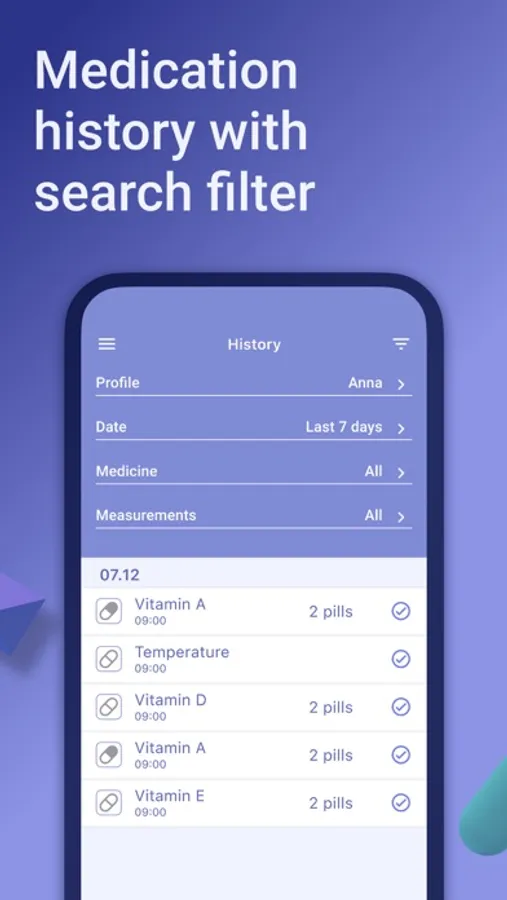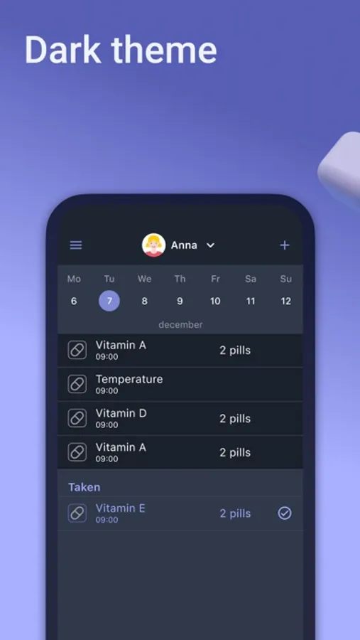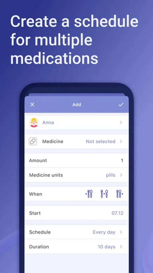 • Prescription scheduling. Schedule the exact number of times each day that you need to take your medication and the app will remind you. There is also a setting in days so that the app can remind you on a specific date.
