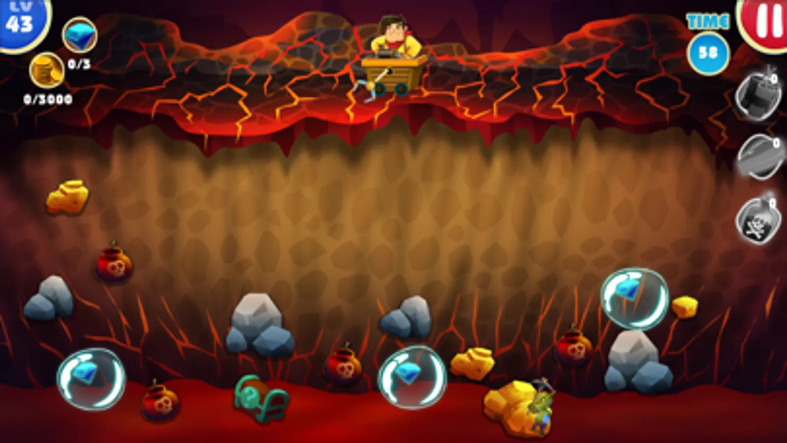 - Your claw will swing back and forth. Tap anywhere on the screen to release the claw to grab gold and diamond
