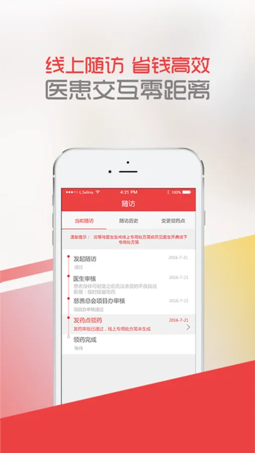CCPAP应用以中华慈善总会多吉美慈善援助项目的业务流程出发,按照患者、医生两套独立使用场景,借助人性化的“一键式”操作界面,直观、简洁地呈现项目流程中的各项操作环节,通过移动互联技术,实现病理报告、医学资料及小视频影像上传,让入组患者与注册医生之间轻松实现远程医学随访,有效减少了传统大病随访为患者及家属带来的种种不便,以高效的随访效率,让患者更为便捷地领取到免费援助药品,有效改善我国大病肿瘤领域患者“随访难、领药难”的现状。