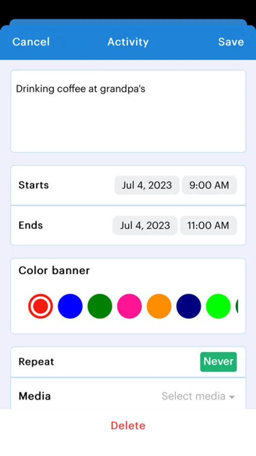 Create personalized photo albums and easily link them to specific activities, allowing you to share and preserve cherished memories. Make your father or mother's life more organized and enjoyable with the DayClocks Agenda app.