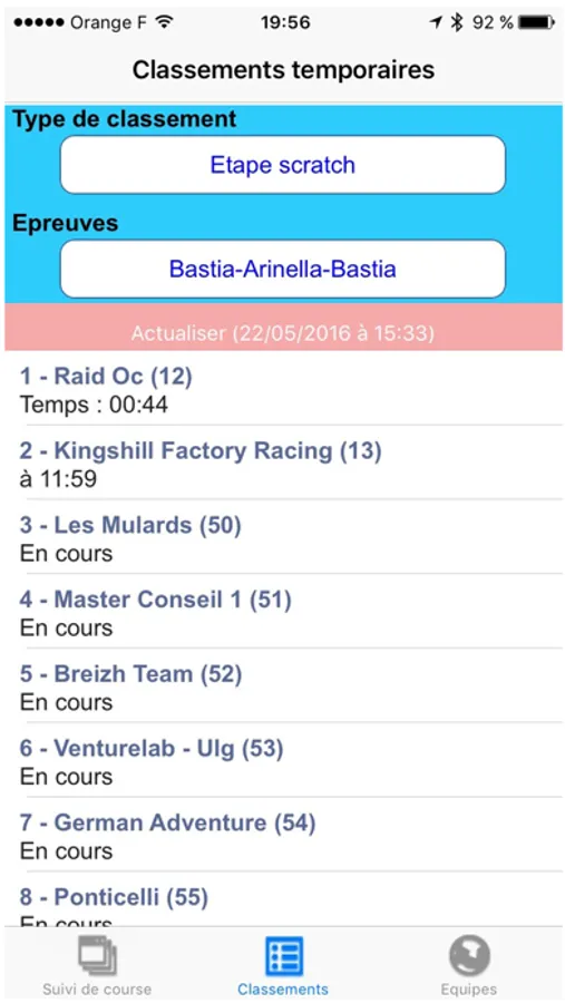 Timings and classifications indicateur on the application are only for information. Official datas are published at the and of the stage.