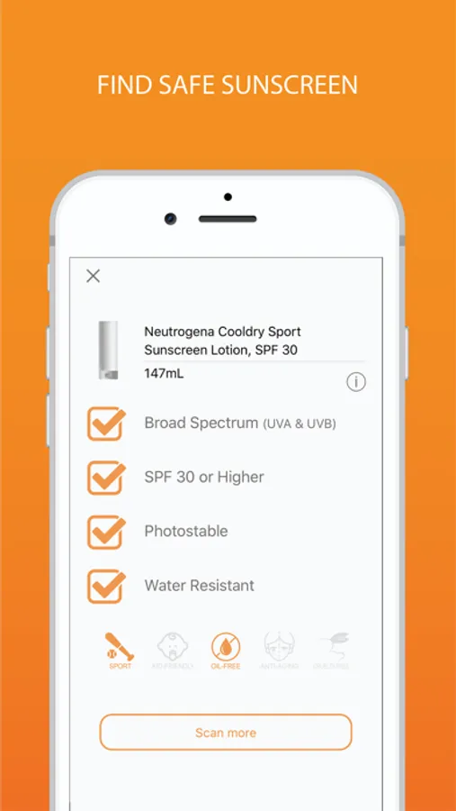 • Scan any sunscreen’s barcode to find out if it’s right for you.