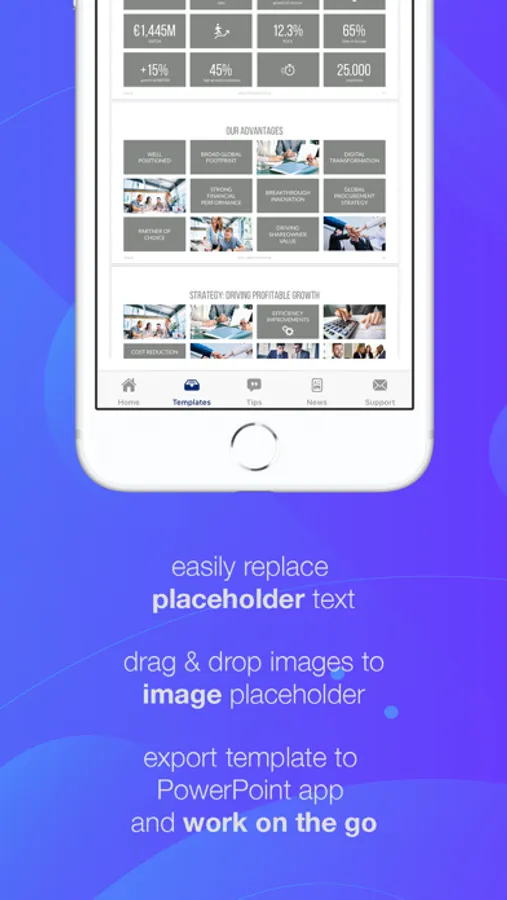 We offer ready-to-use PowerPoint templates with all the important content of a business presentation. All you have to do is replace our placeholder texts with your texts and simply drag and drop your pictures onto the picture placeholder in the template. The completion of a professional business presentation has never been easier.