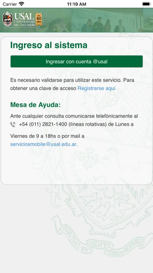 Si sos nuevo en la Universidad, podrás descargarte la aplicación y solicitar tu nombre de usuario y contraseña. Si por el contrario, ya tenés usuario, accedé directamente a todas sus funcionalidades.