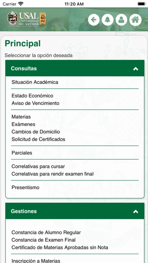 - Solicitar certificados de alumno regular y de examen final