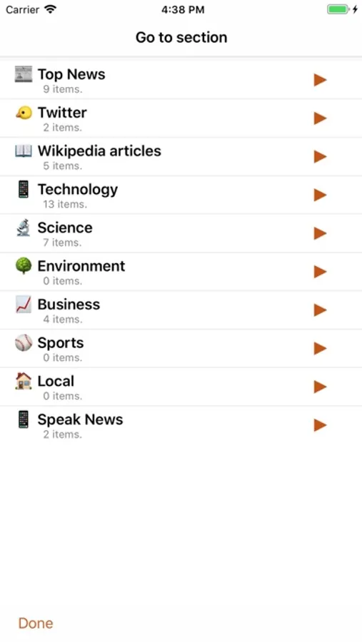 • Speak News automatically rotates through available voices for the current language for each story. This gives more variety and distinction in the sequence of spoken news stories. For instance, in English, this gives U.S. , U.K. Ireland, New Zealand, and Australian voices.
