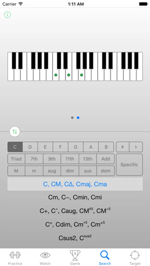 This app is to help us get familiar with all kinds of chords so that we are able to recognize or play them as quick as possible, no matter they are represented by chord symbols, music notes in the stave, or keyboard keys. Improving this ability will definitely benefit all aspects of our music learning. Also, the app can be used as a dictionary to look up chords.