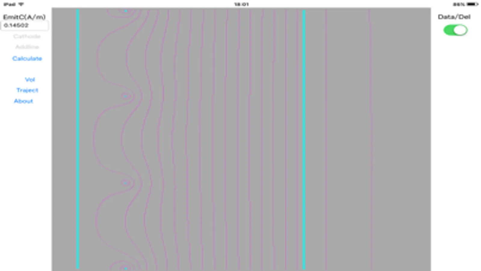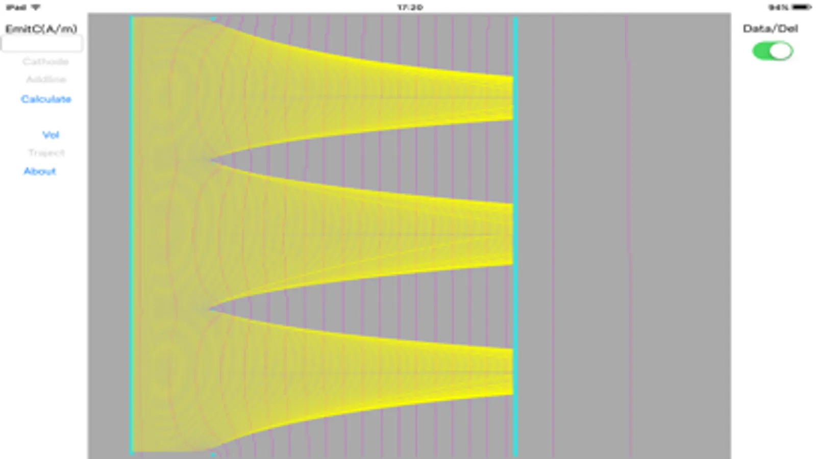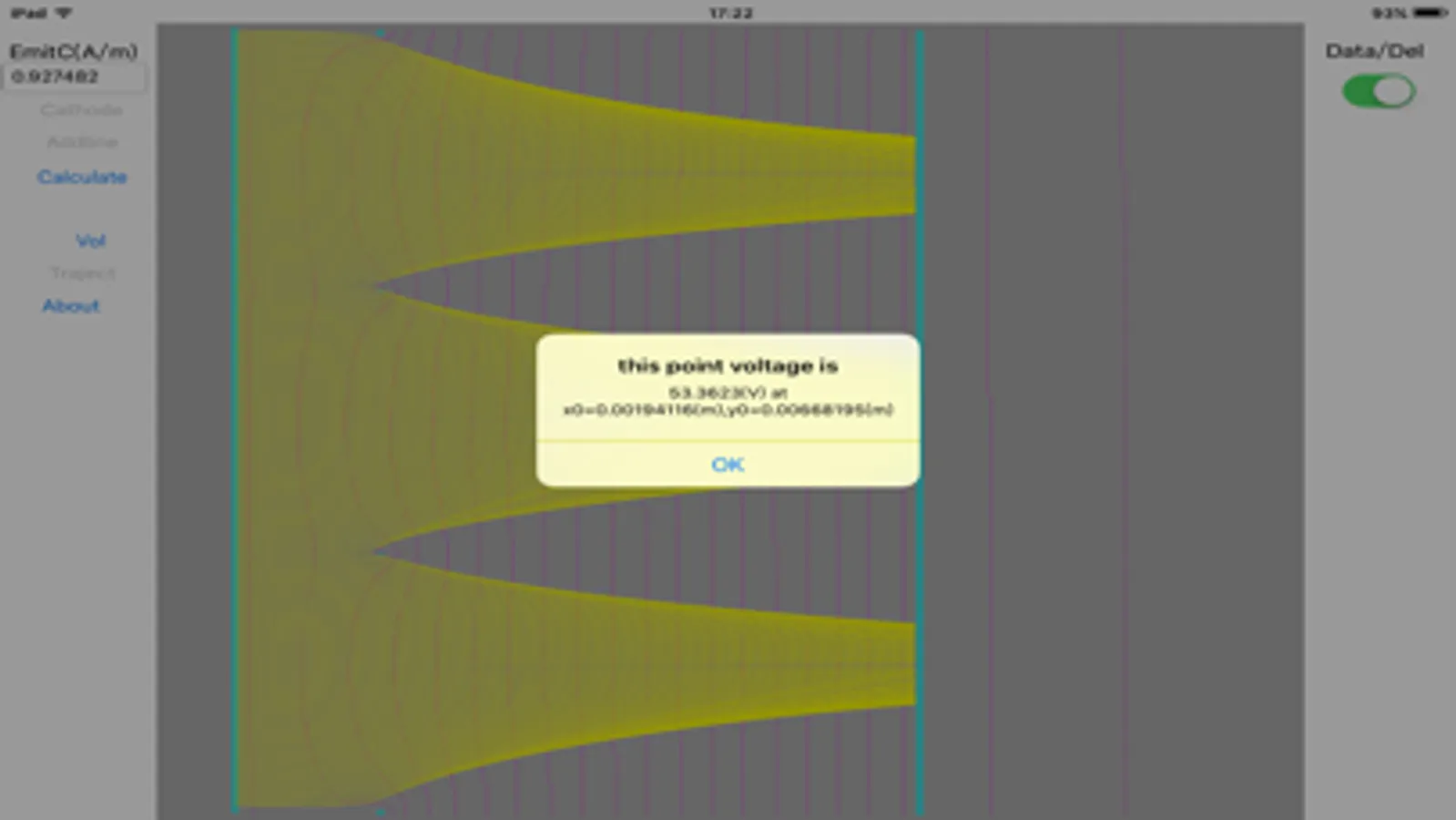 the program simulate the electric 2d field and electron trajectory.