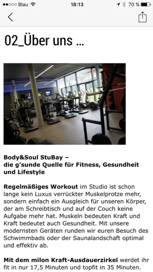 Informationen wie Club-Öffnungszeiten, Kontakt, Trainingstipps sind immer dabei und können sofort per Email an Freunde verschickt werden.