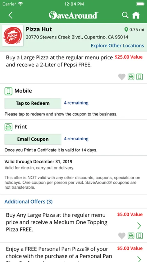 SaveAround’s Mobile Application is a companion to our coupon books and contains extra deals that may or may not be found in our hard-copy coupons books. Our app offers access to a collection of coupons that can be redeemed with merchants in your geographic area (and in some cases online). By using the Mobile Application, as opposed to buying a hard-copy coupon book, you can choose how long you would like access to the coupon collection. We offer subscriptions ranging from 1 month to 1 year. Coupons are valid from January 1 throughout December 31 of each year. There may be multiple copies of some coupons in the collection, while for other coupons in the collection there is only one coupon that may be redeemed during the calendar year. Each January 1, the coupons in the collection are either renewed and can be used again or will be replaced by coupons from other merchants.