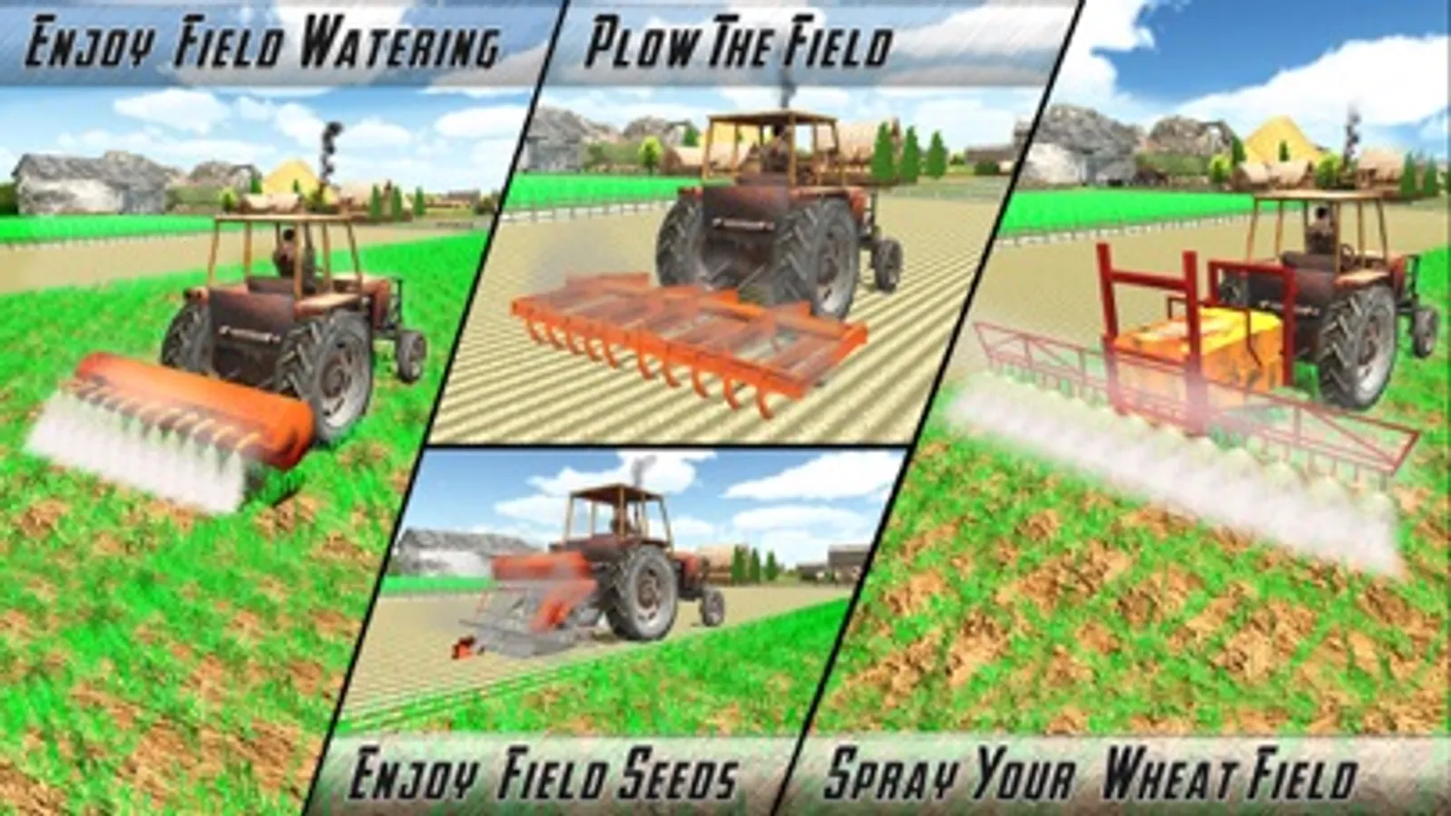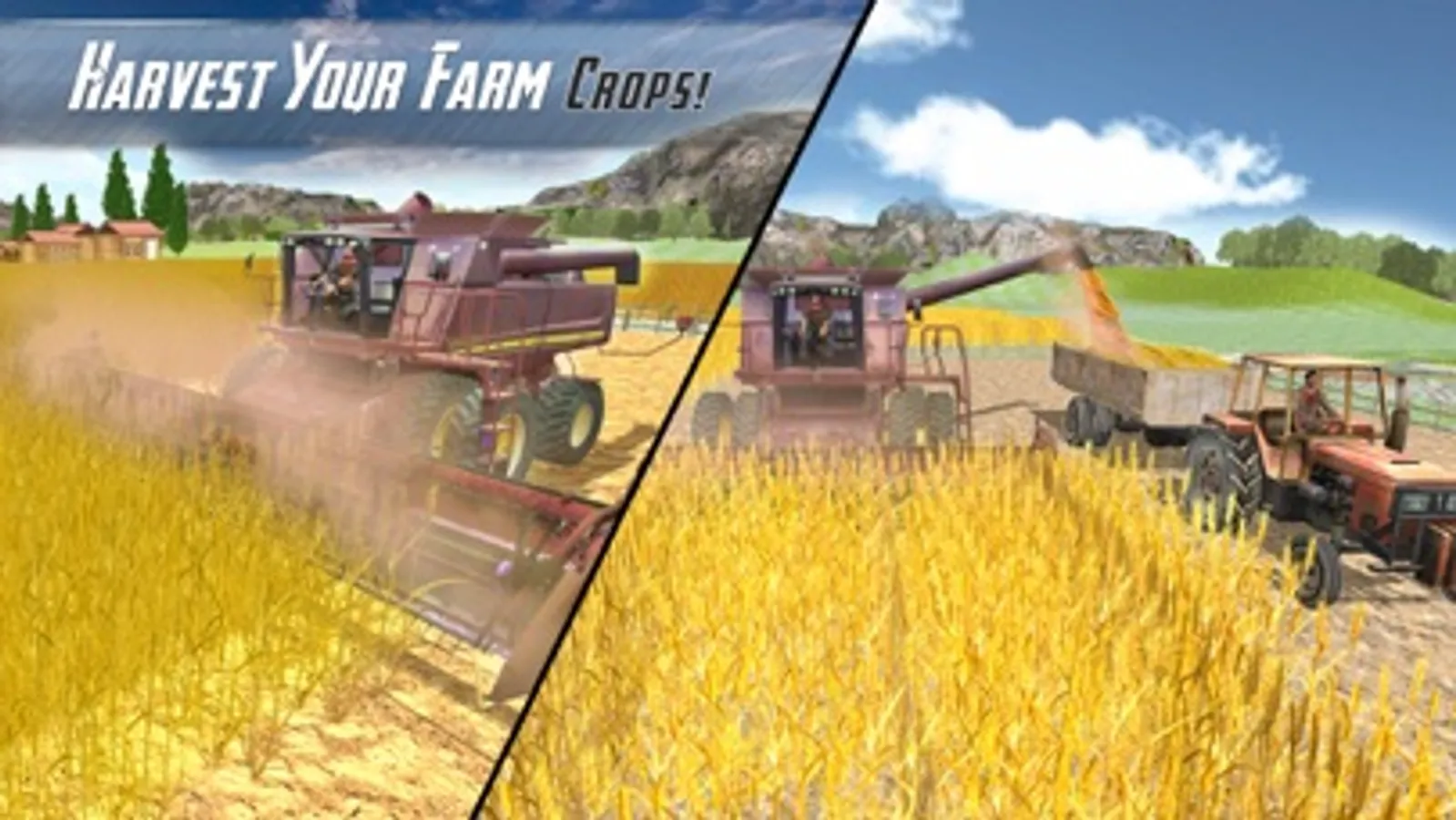 The wheat crop is ready to harvest with the help of harvester machine. Then choose the fertile land plough it and make path for seed with the help of drill machine attach with your tractor, transfer the animals from village to city for sale. After selling the animals come back to give water to your crops, spray your fields to kill insects which can damage your crop, wait for sometime when wheat fully grow again. Harvest them and transport them to warehouse on your transport tractor. Take crops to the city to sell them for handsome amount of money