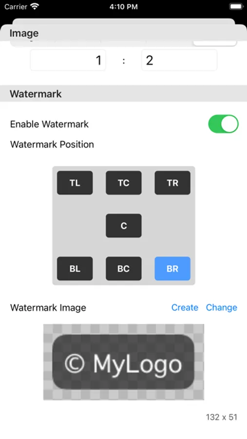 -- Choose watermark location by Tap on the button [TL] Top Left, [TC] Top Centre, [TR] Top Right, [C] Centre, [BL] Bottom Left, [BC] Bottom Centre or [BR] Bottom Right.