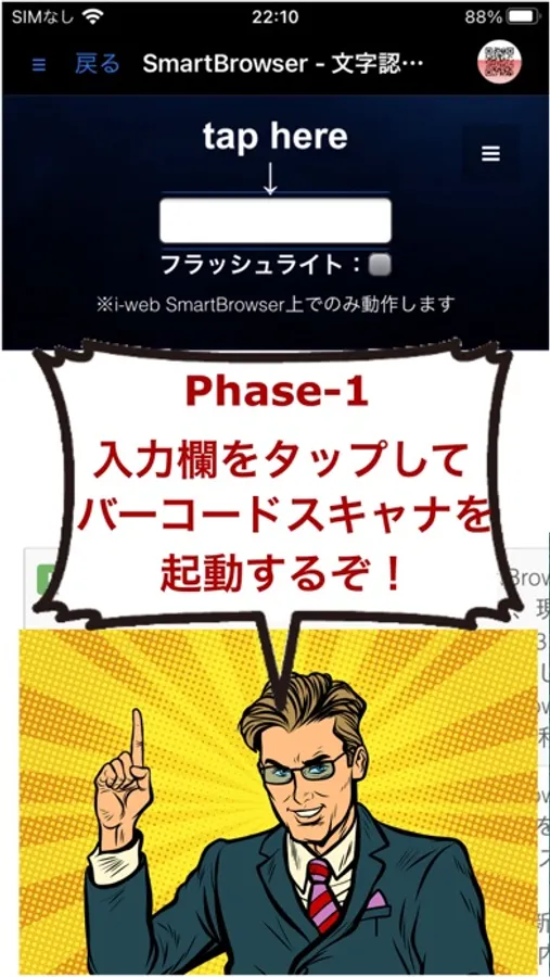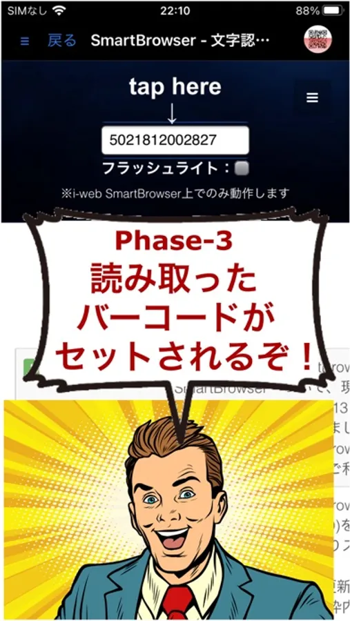 WEBアプリケーション内の入力ボックスからバーコードリーダーを起動して直接入力ができます。