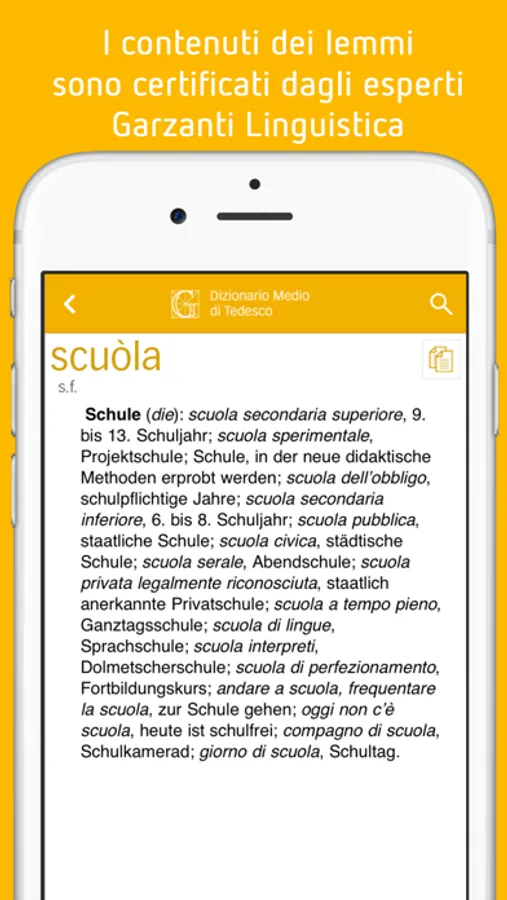 Il Dizionario Medio di Tedesco è sempre disponibile sul tuo dispositivo e dopo il primo download è consultabile anche off-line. Registrandoti, potrai accedere al dizionario ovunque, anche via web quando non hai a disposizione il tuo smartphone o il tuo tablet.