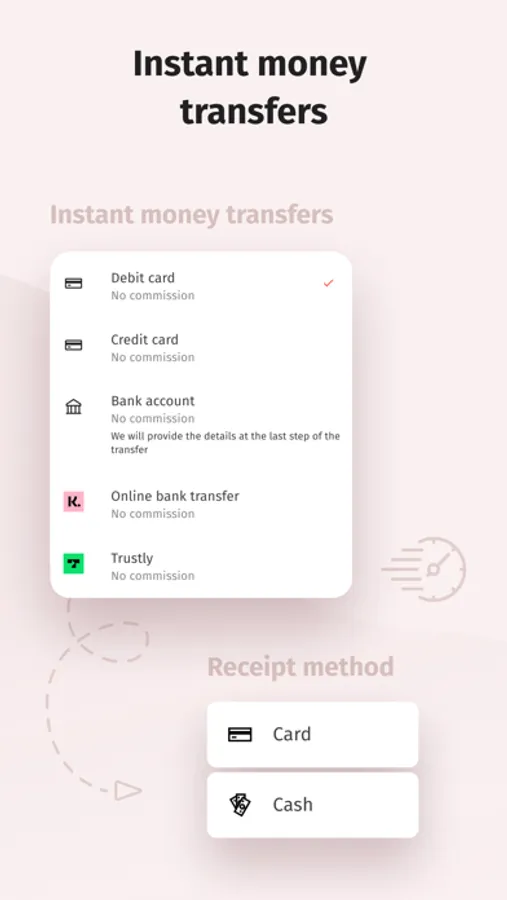 - send money directly to card/account or to receive in cash