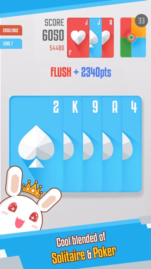 A handcrafted Solitaire game with Poker blended, interesting game mechanics, charming clean visual & a native feel one handed portrait play!