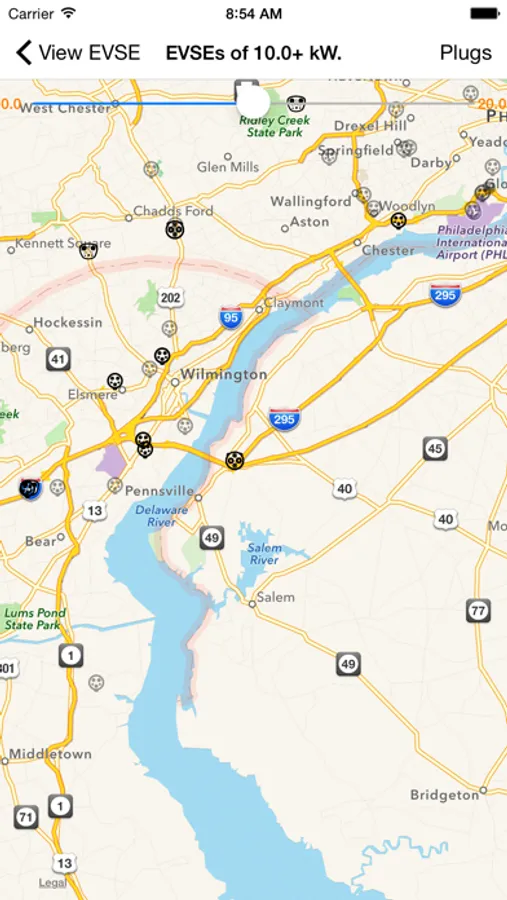 - Map participating charging stations, selecting by plug type and charging power.