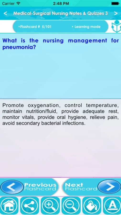 This app is a combination of sets, containing practice questions, study cards, terms & concepts for self learning & exam preparation on the topic of Medical Surgical Nursing.