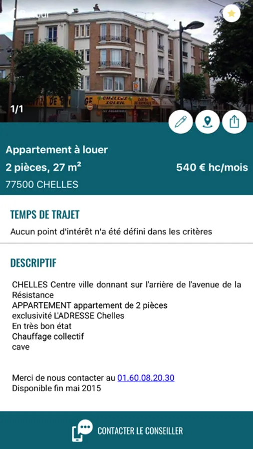 Parmi les fonctionnalités disponibles, Avec l'application l'Adresse, renseignez vos critères personnels pour définir le meilleur endroit où habitez. L'application L'adresse vous calculera vos temps de trajets pour chacune des annonces disponibles.