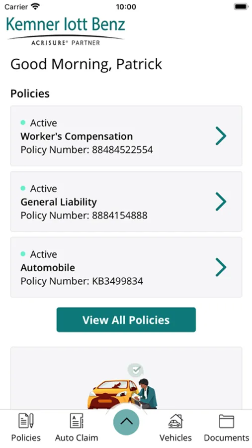 Allows easy access to client policy information. Gives you the ability to view policy documents. Enables you to print automobile identification cards and provides a list of your agency contacts