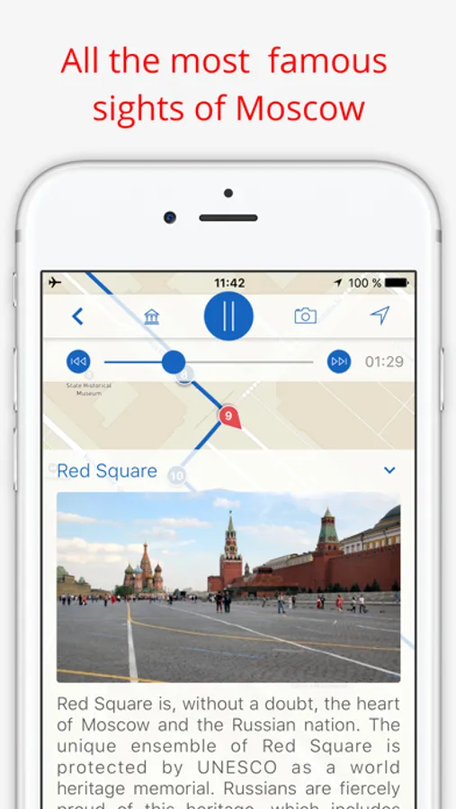 The 'My Moscow' audio-guide guidebook is your personal OFFLINE GUIDE to the most popular sights in Moscow. It's packed with insightful and entertaining information about Moscow's history, local legends, and the most interesting locations.