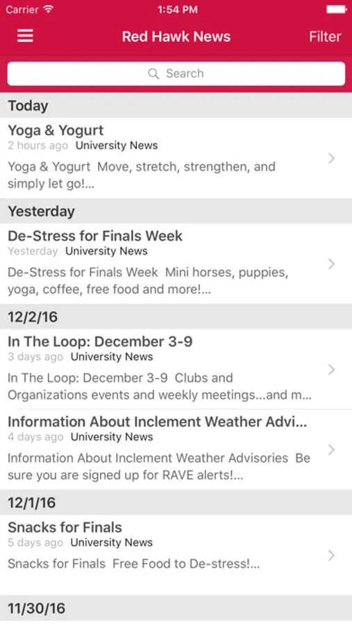 The latest Red Hawk News articles including deadline on, campus events and more.