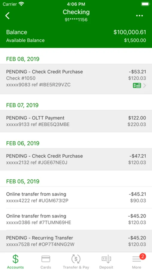 • View scheduled transactions, including pending deposits, upcoming transfers, and bill payments.