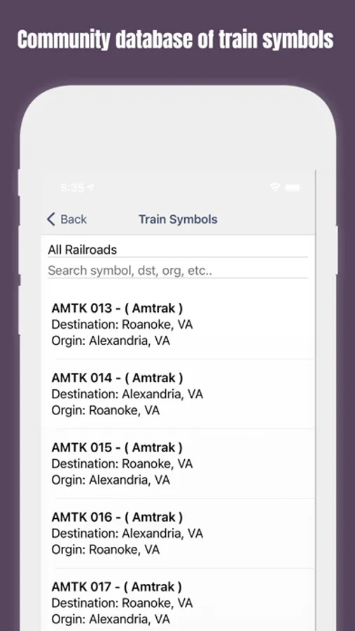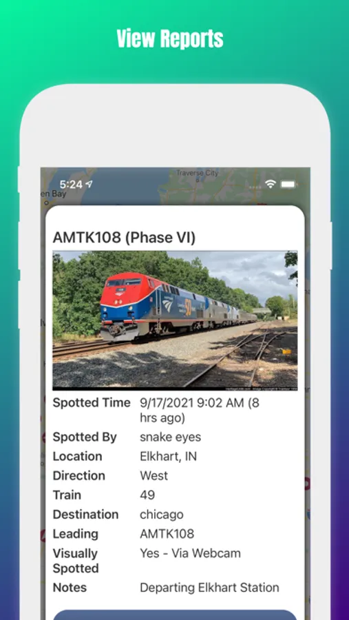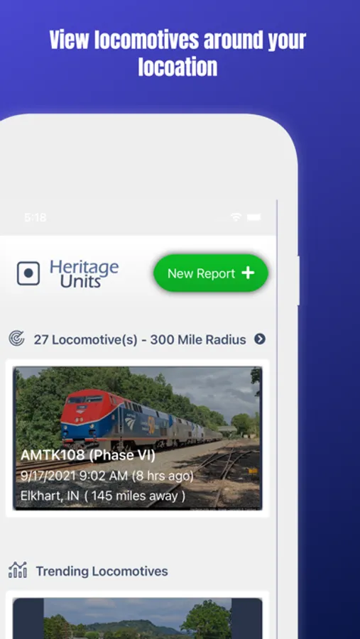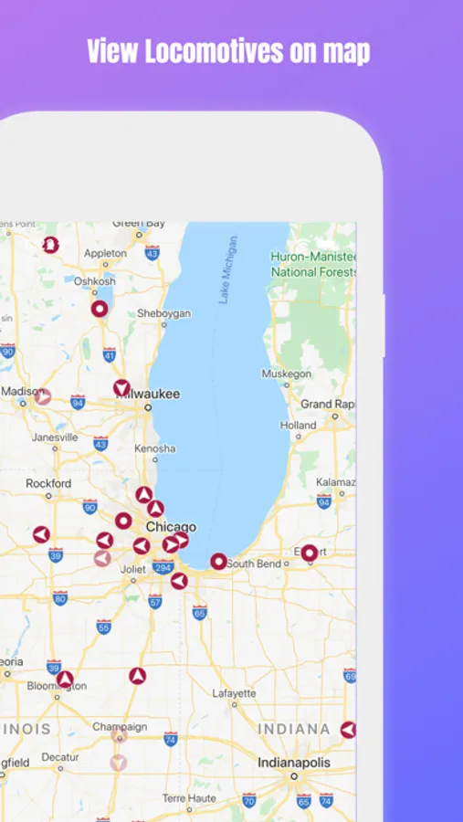 • View reported locomotives within a 200 mile radius of your devices location.