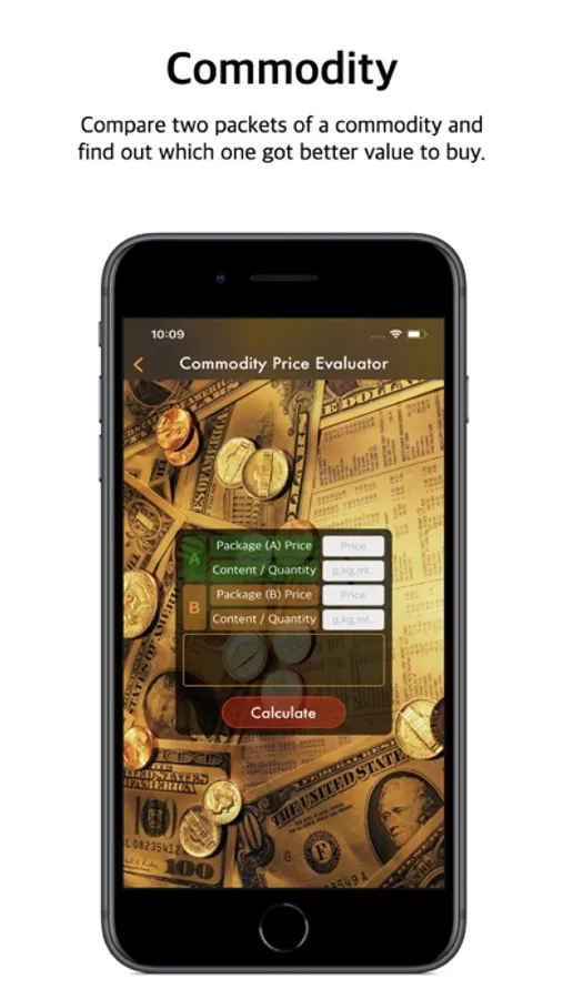 For shopping: This app can compare between two packages of the same commodity with different packaging or different amount
