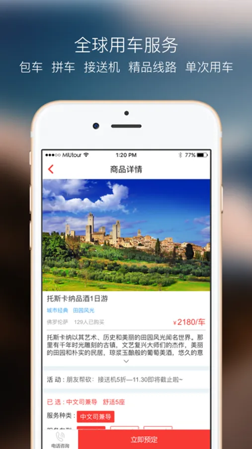 全品类用车:按天包车、结伴拼车、接送机、精品线路、单次用车、定制自由行等各类服务;