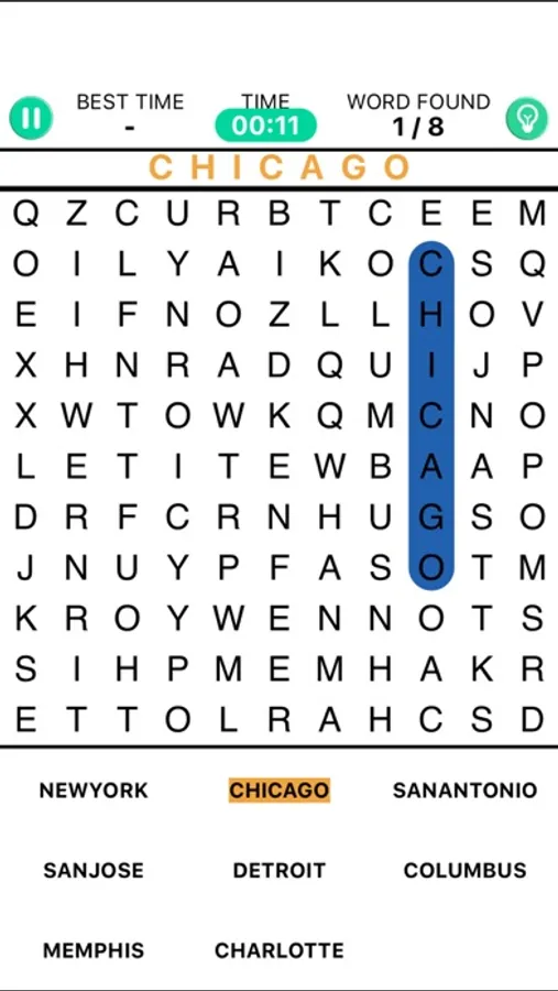 Word Search is classic word find puzzle game. In every round, there is 8 word hidden in a large amount of alphabets. Find all the words to get through. Testing you speed of finding.