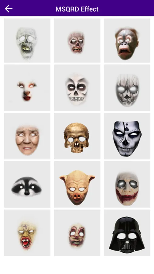 Masquerade Camera Effect app helps you check how's you look in Different types of Masquerade. You can Try different Types of MSQRD instantly using this application. There are many types of Masquerade faces provided in this application.
