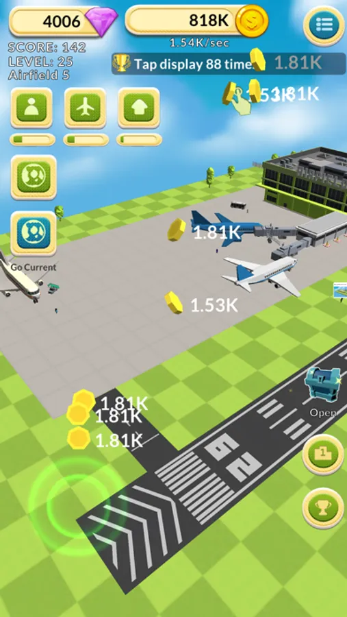 Tap to create money and earn enough money to invest in your airport.