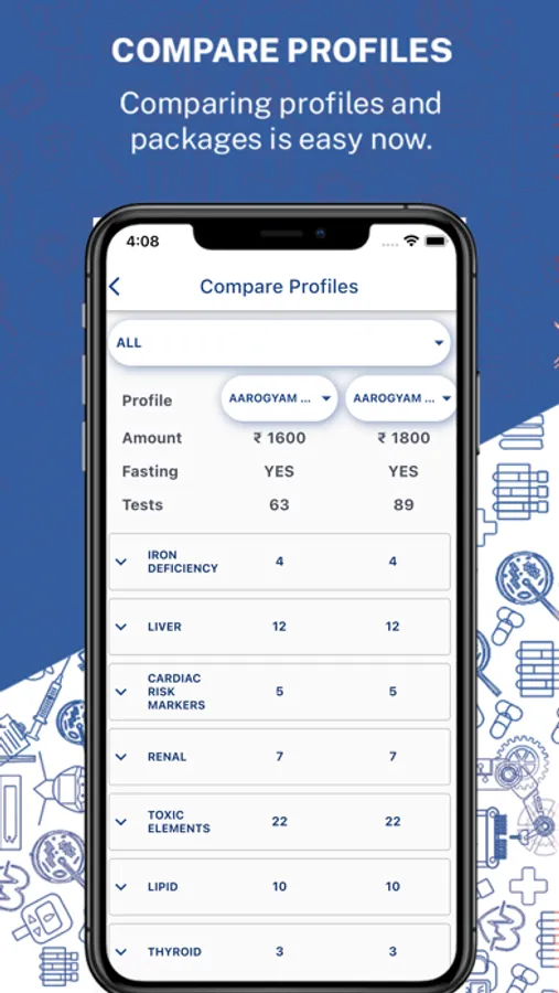 The most crucial step towards treatment is having the right diagnosis at the right price. Compare profiles on the basis of test parameters, and their prices on the tests and make the most appropriate choice.