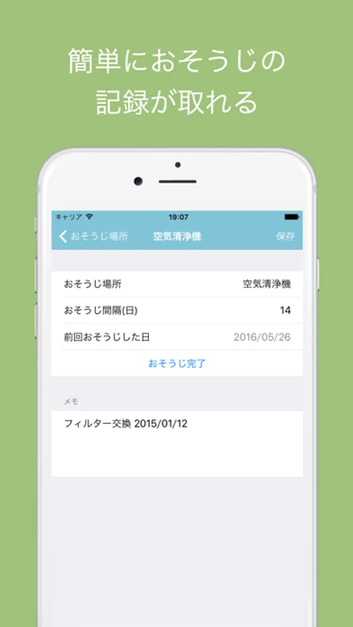 おそうじログはおそうじ専用のメモ&リマインダーアプリ。
