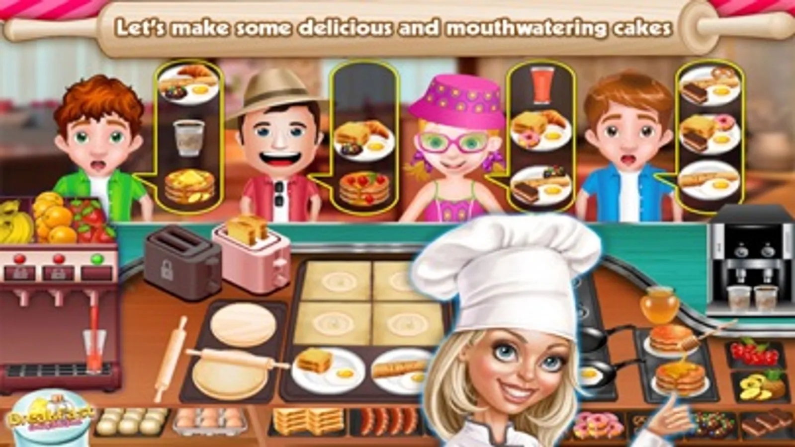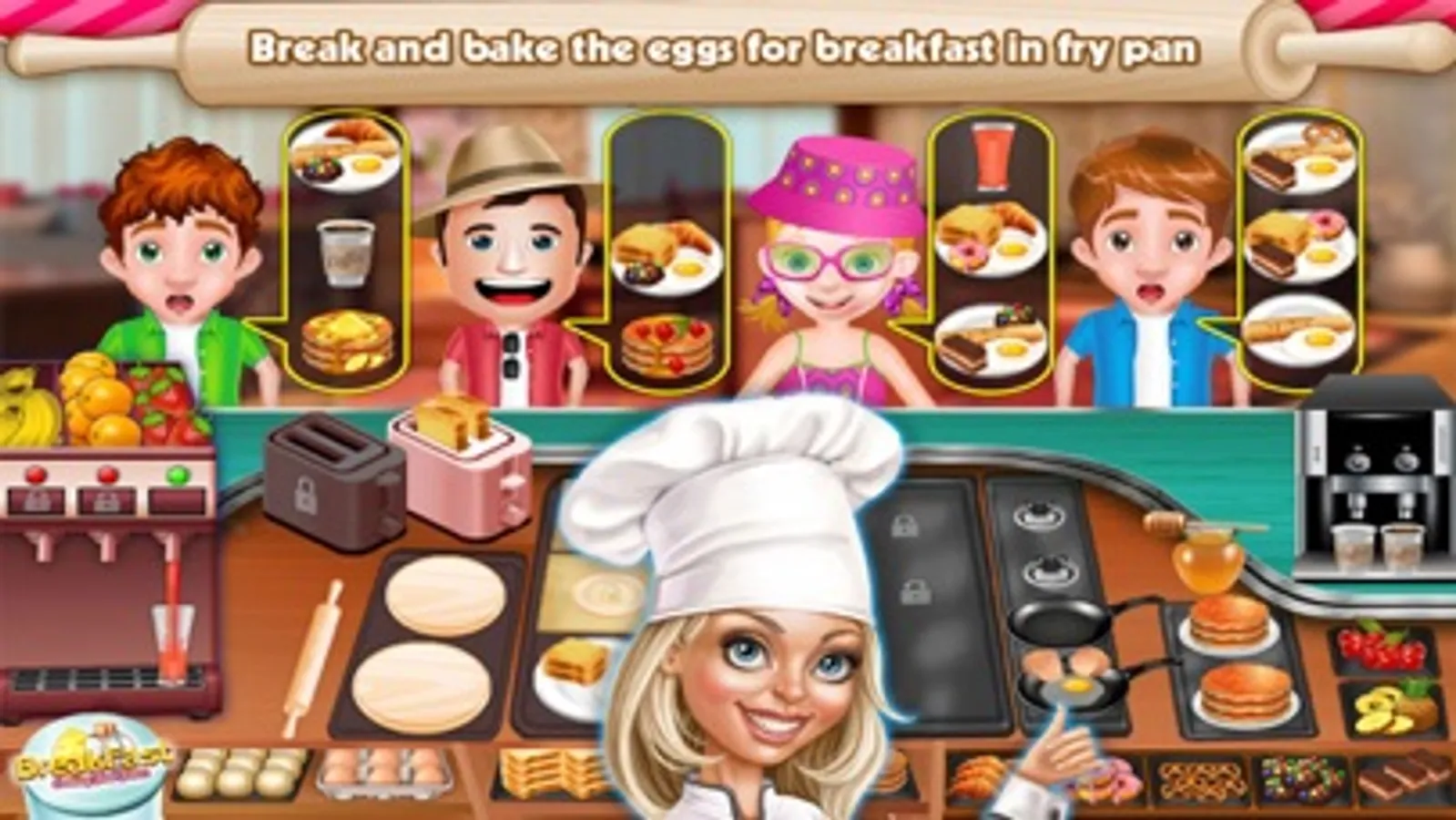 Your are going to have a nice cooking experience in this time management game, the breakfast restaurant is right in the city and there is going to be a big rush of customers soon, it will be challenging for you to serve them timely and fulfill their appetite some customers are going to be very hungry you gotta serve them early otherwise they might get angry. So, its time to sharpen your cooking skills and settle down your cooking food fever, you will be serving your customers with variety of tasty food, you will be frying eggs, serving customers with hot and crispy bread, hot dogs, drinks, coffee, sweet bakery cakes with different flavors,donuts,various kind of biscuits and much more.
