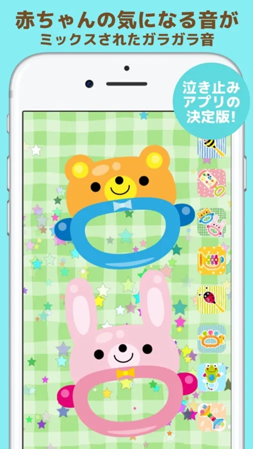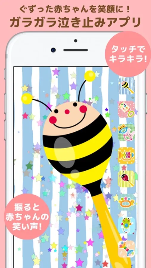 赤ちゃんをあやせるガラガラの泣き止みアプリです。