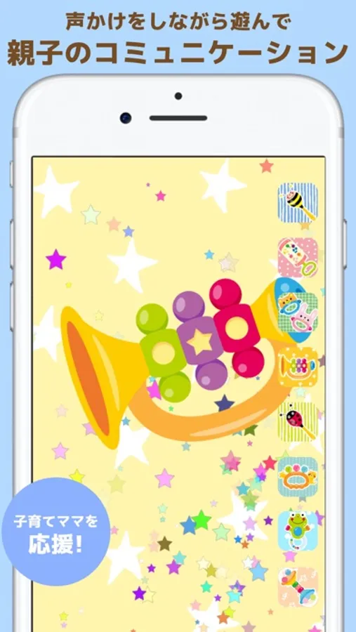 タッチしたりiPhoneを振って赤ちゃんも遊べます。