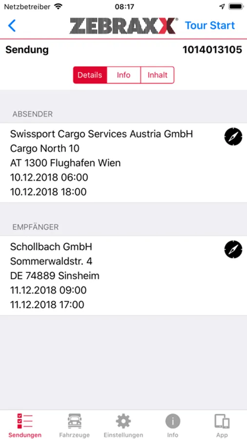 Sofern Ihre Fahrer über ein iPhone verfügen, können Sie zwischen zwei Varianten der Erfassung innerhalb der ZEBRAXX Sendungsverfolgung wählen: