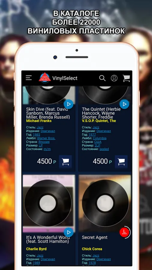 • Удобство навигации и поиска виниловых пластинок по исполнителям, альбомам, жанрам, лейблам, странам и т.д.;