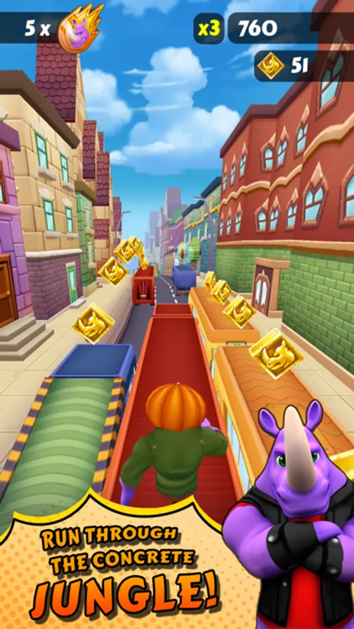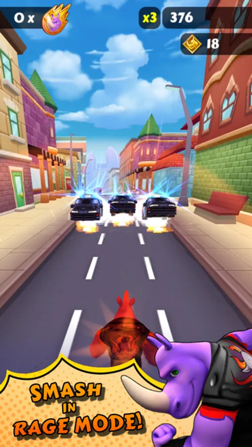 Run, dodge, jump and smash in Rhinbo: a fun, rhino-rocking endless runner game from the makers of Fruit Bump and Jewel Mash.
