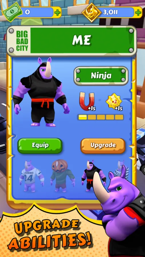 Welcome to the colourful concrete jungle known as Big Bad City! Help Rhinbo escape the Big Bad Police Department in this fast-paced smash-hit endless runner game!