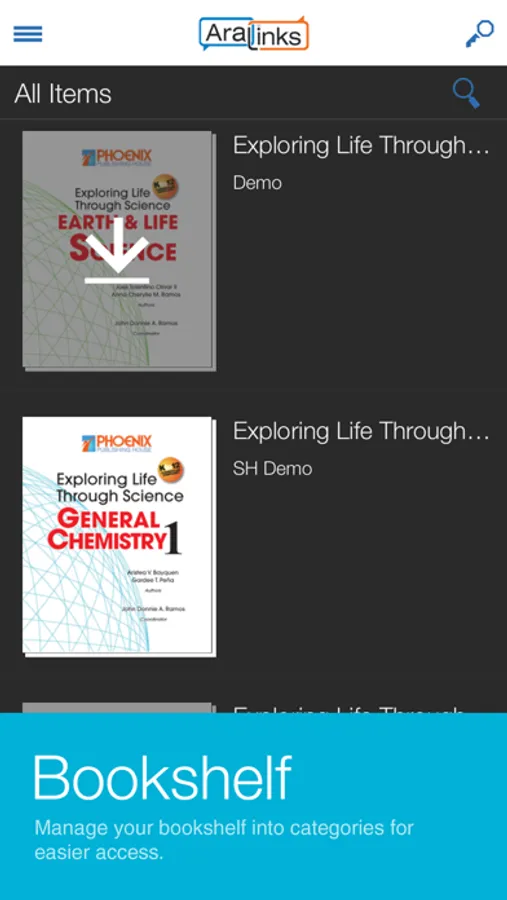Note: Log-in credentials for this app are provided to each client school upon purchase of Aralinks eBooks.