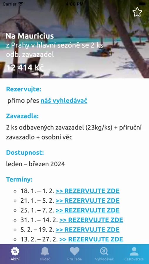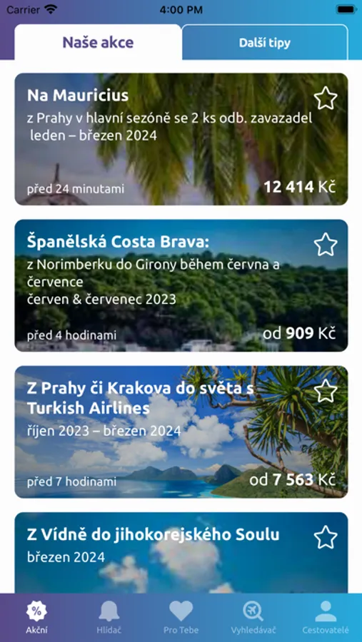 Parta lovců levných letenek pro tebe za pomoci moderních nástrojů od rána do večera prohledává rezervační systémy aerolinek a ty nejlepší pecky okamžitě sdílí v této appce. U každé akce jako bonus najdeš také spoustu dalších cestovatelských tipů od zkušených cestovatelů.