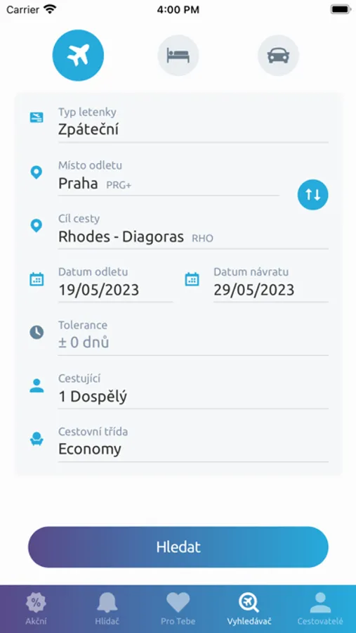 Přímo v aplikaci si vyhledej a rezervuj letenky, ubytování nebo půjčení auta v rámci nejspolehlivějších rezervačních systémů. S námi se ti nikdy nestane, že se v případě problémů nikam nedovoláš, ani tě neosolíme na skrytých poplatcích.